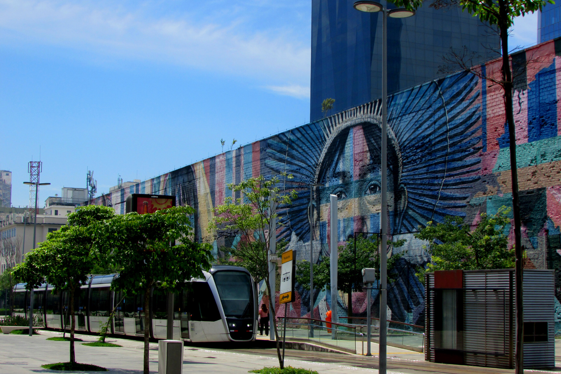 Em seguida, temos o Mural Etnias, batizado de Todos Somos Um, e assinado por Eduardo Kobra, artista muralista reconhecido mundialmente. O mural de 3 mil metros quadrados foi certificado pelo Guiness Book em 2016 como maior grafite do mundo. A arte foi inspirada nos cinco anéis olímpicos, representando povos nativos de 5 tribos dos 5 continentes do globo. Atualmente os muros coloridos são um dos pontos mais fotografados da região.